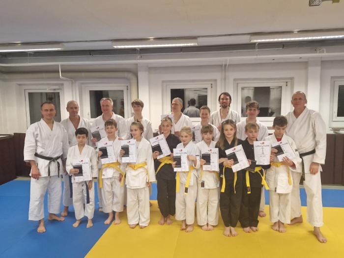Geprüft wurde vom 9. bis zum 6. Kyu. Diese Möglichkeit nutzen auch zwei Erwachsene Karatekas. Die jüngste Teilnehmerin war die 6-järigen Ella Voigt, sie bestand den 9. Kyu, und der älteste Teilnehmer war mit 61 Jahren Valentyn Denysyuk, er bestand den 8. Kyu.