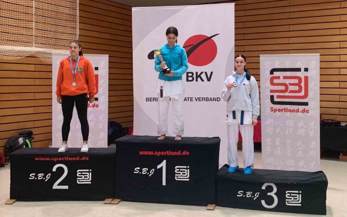 Vom Nikko-Dojo e.V. startete für den SC Banzai Berlin unsere Charleene Tsoucalas in der Katagorie „Juniors U18, Kumite -59 kg, female“. Nach einem langen Weg konnte sich Charlene mit einer sehr guten Leistung den 3. Platz nach Griechenland und Italien sichern. Was für ein persönlicher Erfolg!